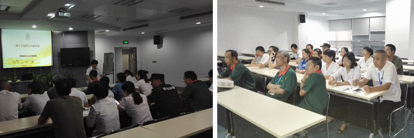 为保障公司职工的基本利益,行使职工的知情权和表决权,我们项目部于6月14日在2楼培训教室召开了第十三届职工代表大会,进行了关于《浙江港湾物业有限公司实行综合计算工时制和不定时工作制》的商讨表决。出席会议人员18名,其中由于网络部参加人员较少,仅有3名,所以此次与迪荡一起进行。