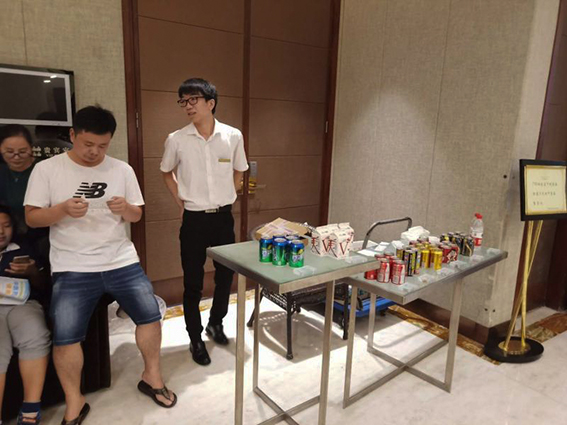 开赛前一天下午,刚接待了一场婚宴,待婚宴结束婚庆公司撤场后已经是晚上十点多,销售部宴会厅员工布置会场起到凌晨1点,次日又早早赶来,做好开赛的各项准备工作。比赛这两天,正赶上中秋放假,销售部全体成员,都放弃休假,全体到岗,做好整体接待协调工作。